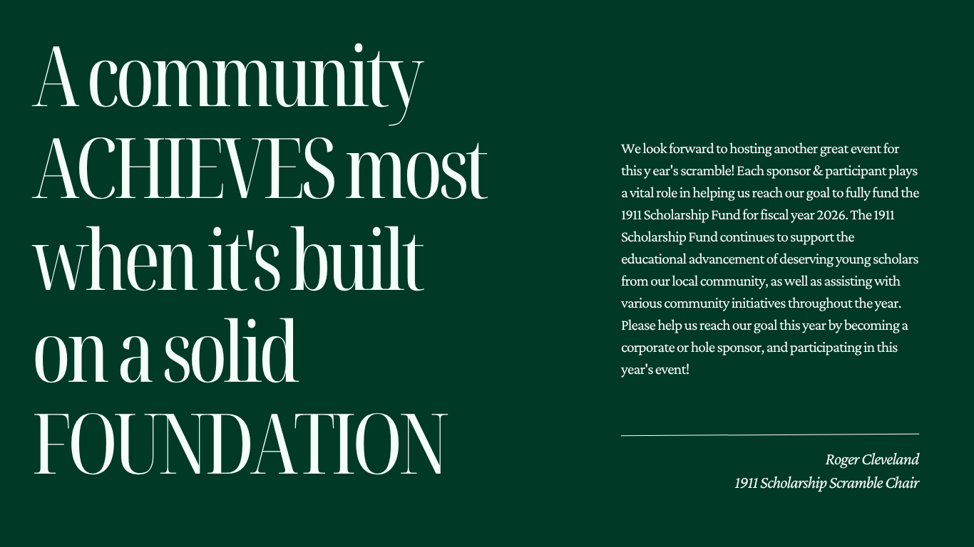 The annual 1911 scholarship Golf Scramble will be held on Saturday June 13TH, 2026 at University Club of Kentucky 4850 Leestown Road, Lexington, Ky 40511